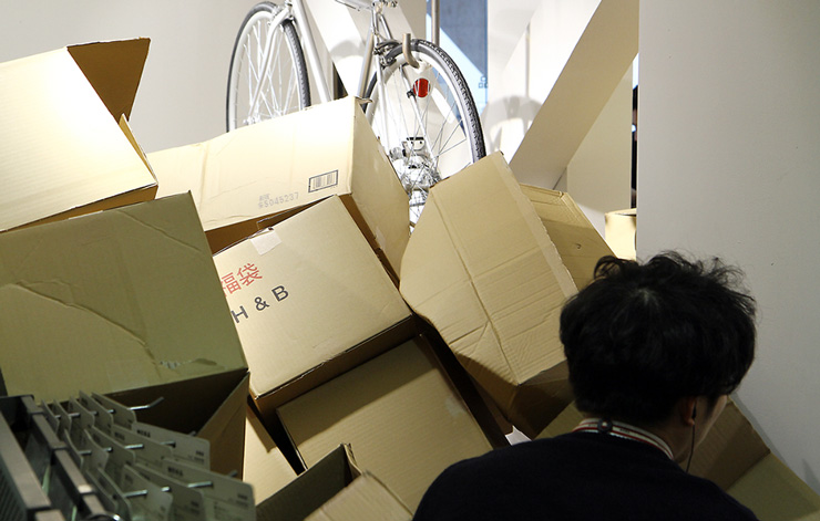 손님들이 박스를 뜯고 마구 던저 놓아 난장판이 된 무지루시 매장