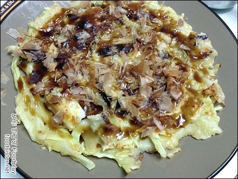 집에서 해 먹는거라 부침개랑 비슷해졌지만 내용물과 소스가 다르다보니 오꼬노미야끼의 모양새와 맛은 나옵니다.