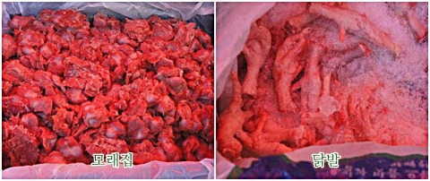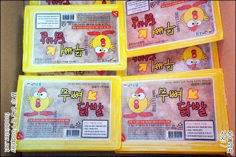 한 쪽으로 가니 각종 크기의 냉동닭을 팔고 있는 곳이 있었어요. 이 곳에선 닭 뿐만 아니라 모래집, 닭발도 있었어요. 제가 워낙에 불닭발을 좋아하는지라 닭발요리를 집에서 한번 해보고 싶었는데 마침 팔길래 사보려고 했죠. 근데 발톱도 손질을 따로 해야하는지라... 그냥 다 손질되어 있는 무뼈닭발 패키지를 구입했어요. ;;