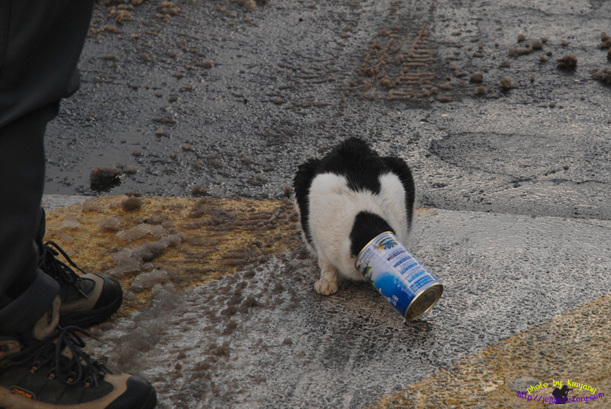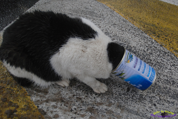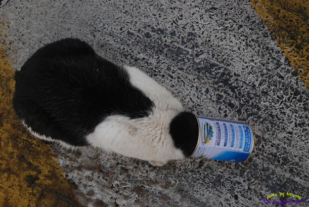 그런데 이 고양이는 왜 깡통을 뒤집어쓰고 있는 것일까.