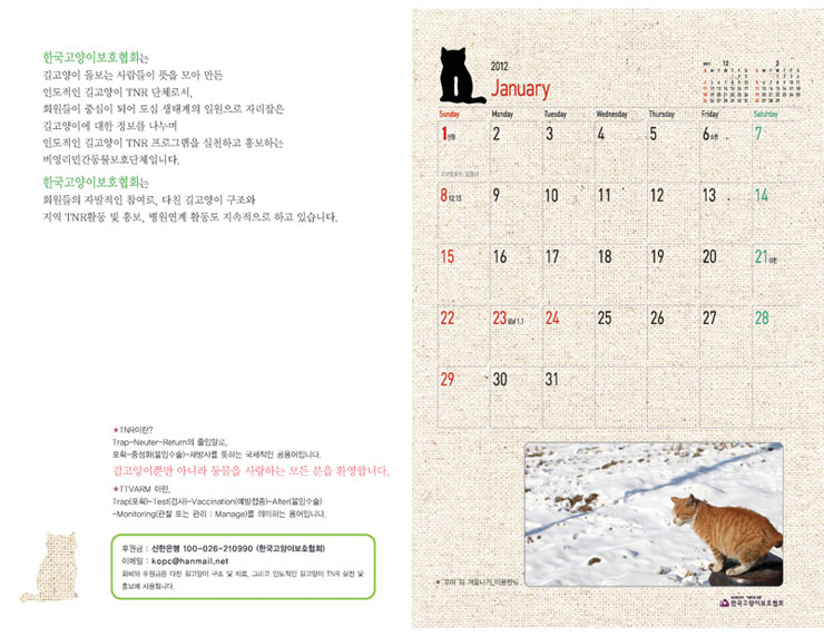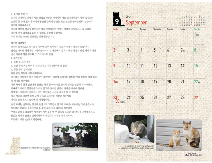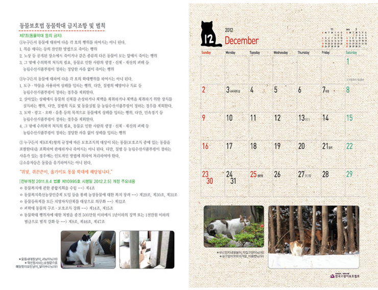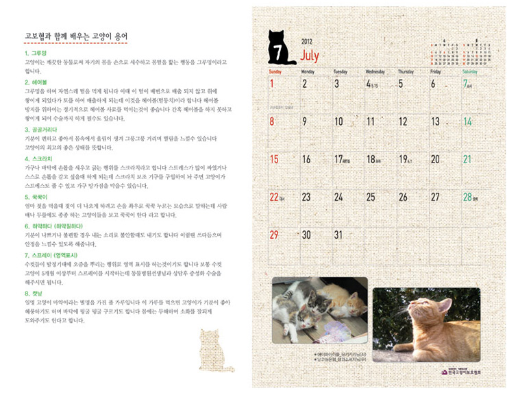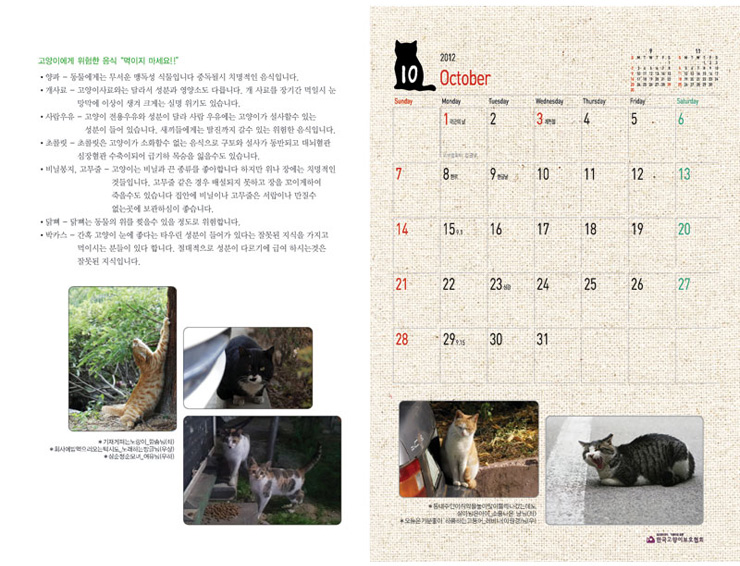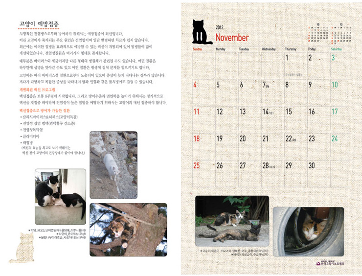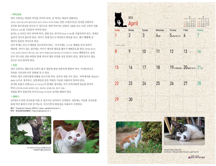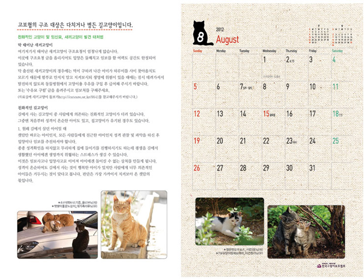 한국 고양이 보호 협회에서 2012년 탁상용 카렌다가 나왔습니다~~!!